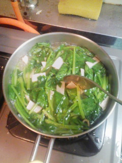 再度沸騰して、ほうれん草がしんなりなったら完成
