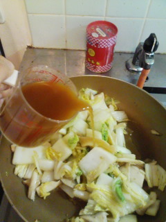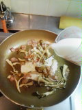 マイタケも投入してしんなりするまで炒めます。(中火)