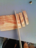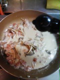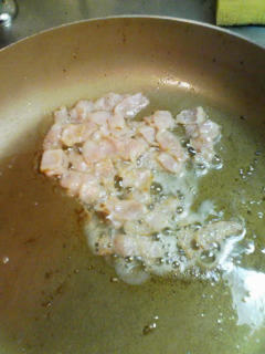 ベーコンを焦げ目がつくまで弱火で焼きます。